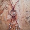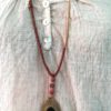 Κολιέ με μεταλλικό , πολύχρωμο στοιχείο, γρι κρυσταλλάκια ,ημιπολύτιμες χάντρες και κορδόνι.