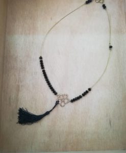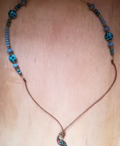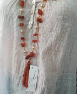 Boho κολιέ με μαλλί και χάντρα 3 εκ.