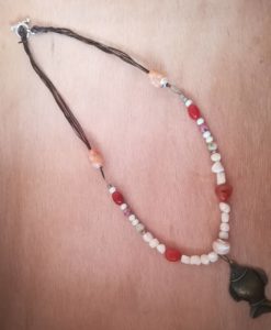 Boho κολιέ με μαλλί και χάντρα 3 εκ.