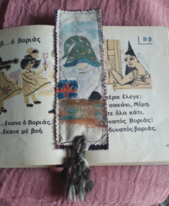 Εξ ολοκλήρου χειροποίητος σελιδοδείκτης ζωγραφισμενος σε βαμβακερό υφασμα με ανεξητιλα χρώματα Μήκος 21cm φάρδος 7 cm “Gnome”